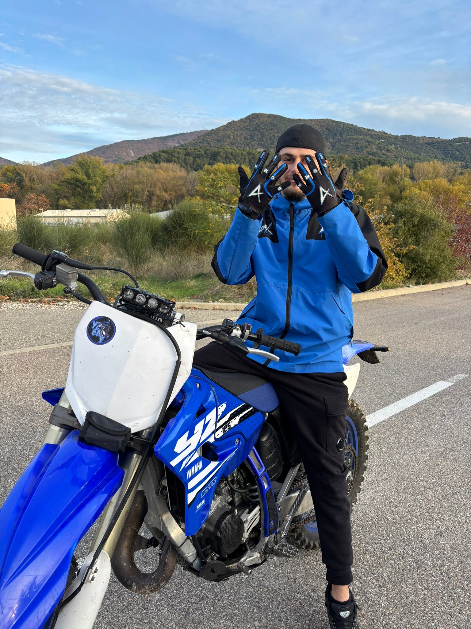Veste shadow YZ - Shadow grey + cagoule YZ bikelife + gants typhon Blue